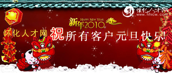 轉(zhuǎn)眼間,我們將送走碩果累累的2009年,迎來(lái)充滿希望和更多期待的2010年。值此元旦佳節(jié)之際,懷化人才網(wǎng)全體員工祝大家身體健康,工作順利,合家歡樂(lè)!感謝所有客戶多年來(lái)對(duì)懷化人才網(wǎng)的支持與關(guān)注。