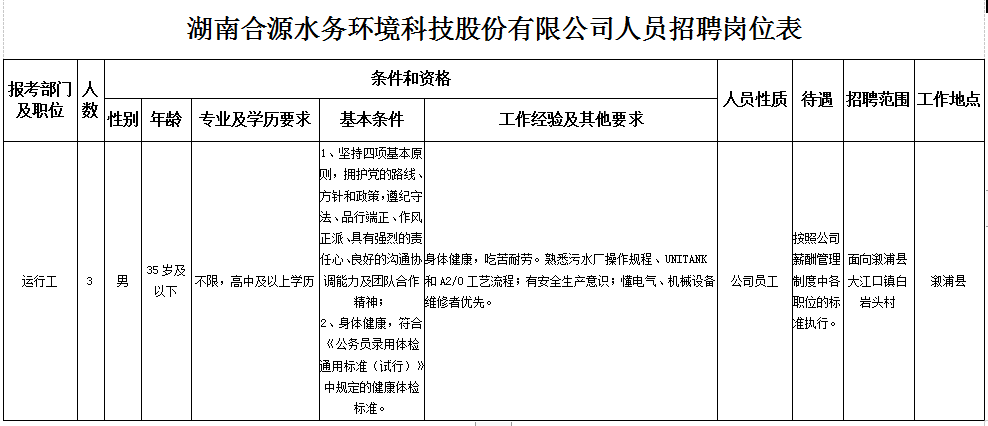 具體招聘崗位及應(yīng)聘條件見《湖南合源水務(wù)環(huán)境科技股份有限公司人員招聘崗位表》。