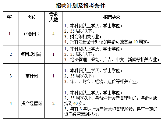 我公司于2022年9月7日至9月16日通過懷化新聞網(wǎng)、懷化人才網(wǎng)、懷化市城市建設(shè)投資有限公司網(wǎng)站及懷化市城市建設(shè)投資有限公司公眾微信號(hào)等面向社會(huì)發(fā)布招聘信息。截至9月16日,部分崗位報(bào)名人員未達(dá)到開考人數(shù)比例。經(jīng)第一次延長(zhǎng)報(bào)名后,仍未達(dá)到開考人數(shù)要求,經(jīng)公司研究決定,對(duì)以下崗位的招聘要求做適當(dāng)調(diào)整: