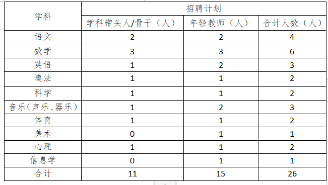 (三)小學(xué)教師崗位(26人,含儲備教師)