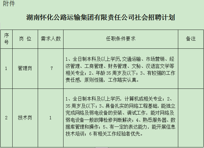 附件:湖南懷化公路運(yùn)輸集團(tuán)有限責(zé)任公司2023年社會(huì)招聘計(jì)劃