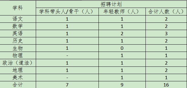 (二)初中教師崗位(16人)