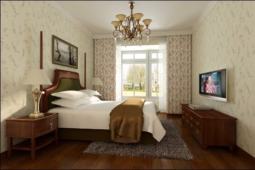 臥室的效果,給人舒適的感覺。。重色的家具搭配淺色的田園藝術窗簾給人協(xié)調(diào)舒適的感覺。。。。。 |
