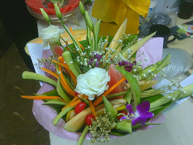 里面只有黃瓜,胡蘿卜,圣女果,西瓜,哈密瓜,藝術(shù)和吃結(jié)合 |