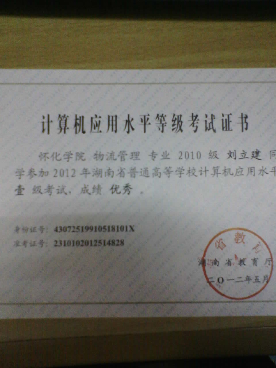 計算機(jī)應(yīng)用水平等級考試證書 |
