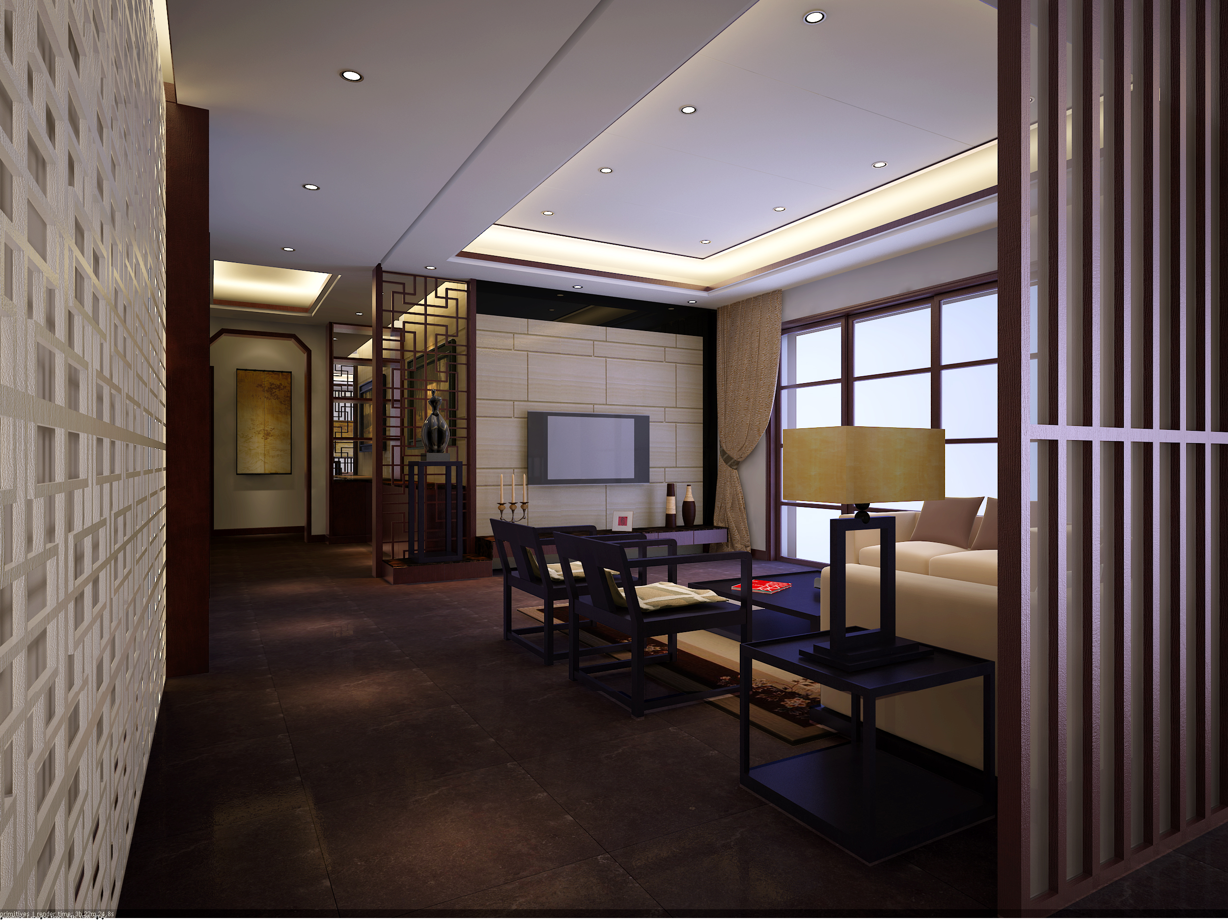 主人喜歡中式裝修,客廳是傳統(tǒng)與現代居室風格的碰撞,我以現代的裝飾手法和家具,結合古典中式的裝飾元素,來呈現亦古亦今的空間氛圍。中式風格的古色古香與現代風格的簡單素雅自然銜接,使生活的實用性和對傳統(tǒng)文化的追求同時得到了滿足。影視墻的造型簡潔現代,卻在醒目位置飾以中式書法,這種絕妙的組合給人以強烈的視覺意志力,成為時尚與古典的柔媚結合 |